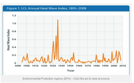 The Y-axis is not easy to interpret, but bear in mind this graph shows HEATWAVE conditions only, defined to be above the 10 year average over four consecutive days. The graph does not enable you to say if the average temperature is increasing or is the frequency of hot days increasing.