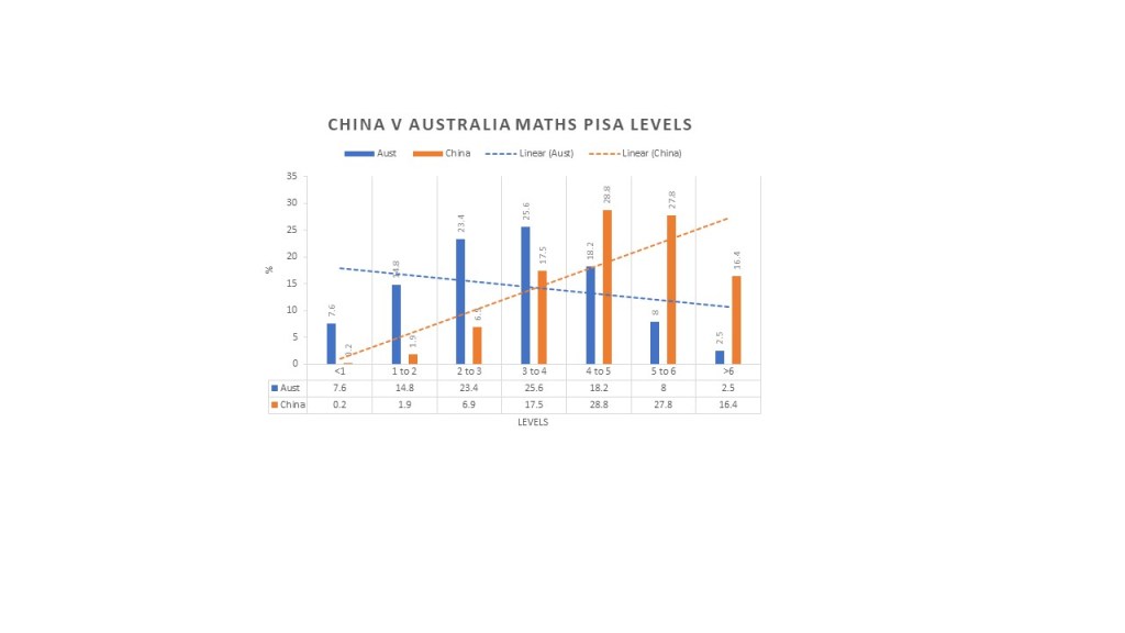 China sample is not random. It is skewed to the brightest students across 4 provinces nominated by the Chinese Government. This is the exception all other countries are sampled randomly.